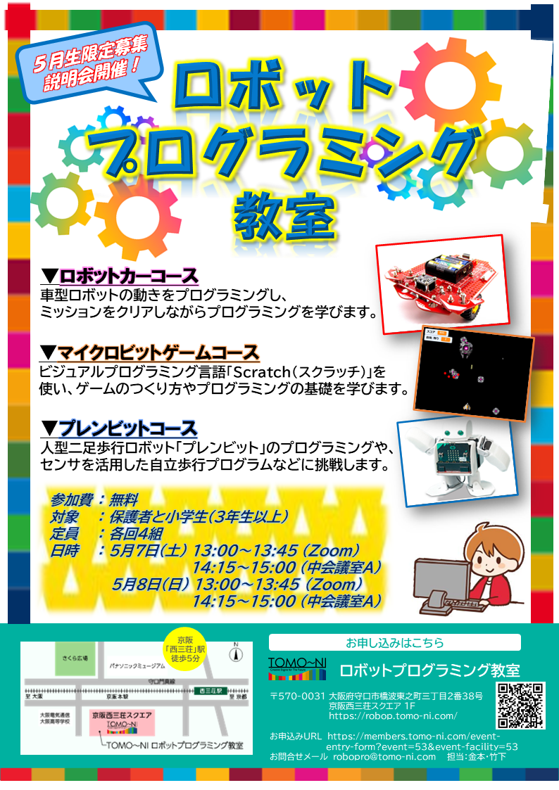 TOMO~NIロボットプログラミング教室では、4月より2022年度を開講しておりますが、